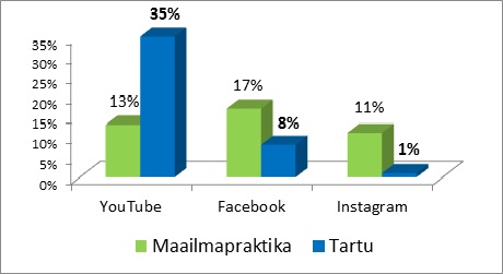 Kui YouTube'is veedavad tartlased maailmapraktikaga võrreldes poole rohkem aega, siis Facebookis ollakse samavõrra vähem aega. Kui Elisa kliendibaasi analüüs näitab, et tartlased kulutavad Facebookile mobiilse interneti andmemahust 8%, siis Ericssoni statistika alusel on maailmapraktika alusel selleks numbriks 17%.