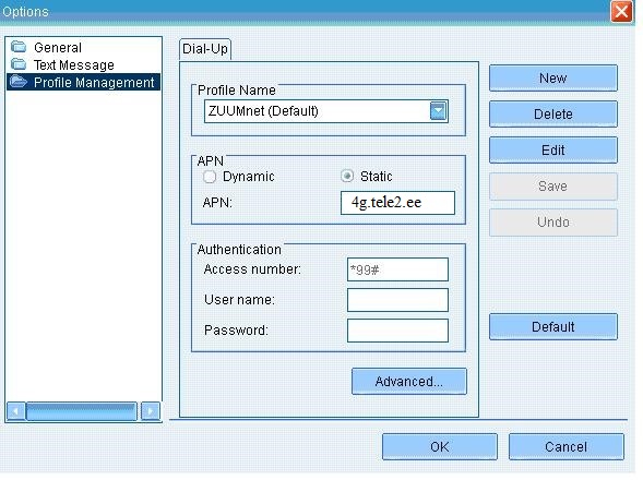 1. Выбери "Настройки" > слева с краю Dial Up > Profile Management